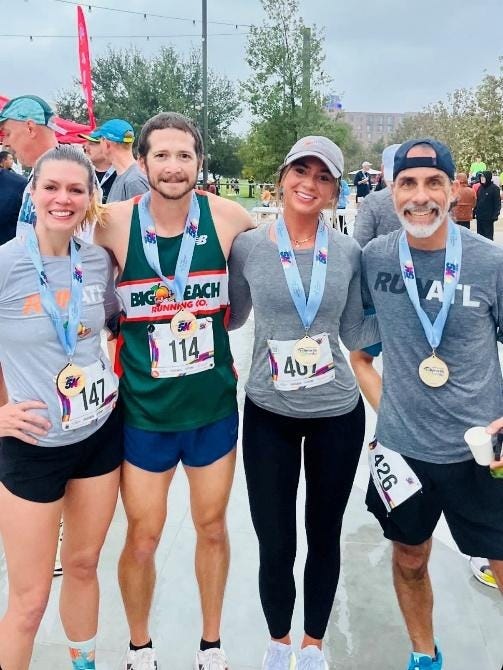 HOLIDAY HIGHLIGHT: The author (far right) and friends at the Finish of the Indie 5k, held during The Running Event in San Antonio, TX early this month.